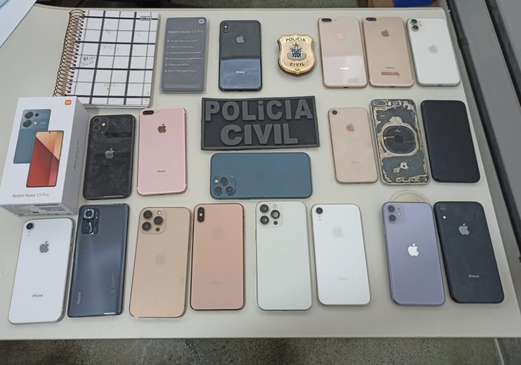 Durante as buscas, foram aprendidos diversos aparelhos de telefone que terão sua propriedade verificada junto às vítimas.