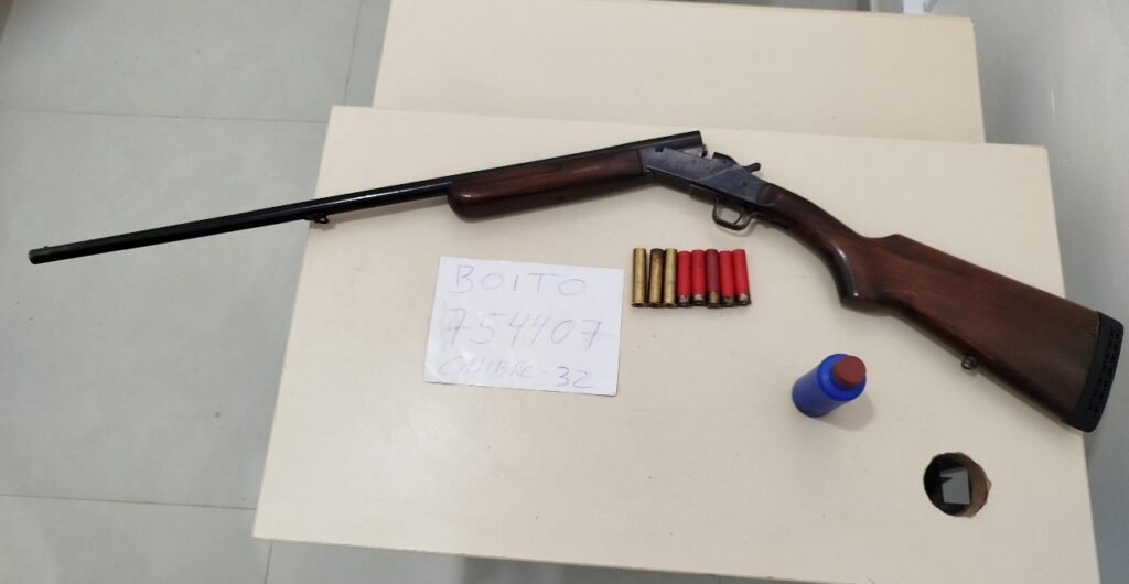 Policiais militares da Companhia Independente de Polícia de Proteção Ambiental Porto Seguro (CIPPA/PS) realizaram a apreensão de uma arma de fogo, munições e um animal silvestre abatido no último domingo, 20 de julho, no Bairro Vila Simão, município de Vitória da Conquista. Durante patrulhamento de rotina, uma guarnição da CIPPA/PS avistou um homem que, ao perceber a aproximação da viatura, fugiu para uma área de mata. No local onde o suspeito se encontrava, os policiais encontraram uma espingarda calibre .32, uma sacola contendo sete cartuchos intactos e um deflagrado do mesmo calibre, além de um tatu peba abatido.
