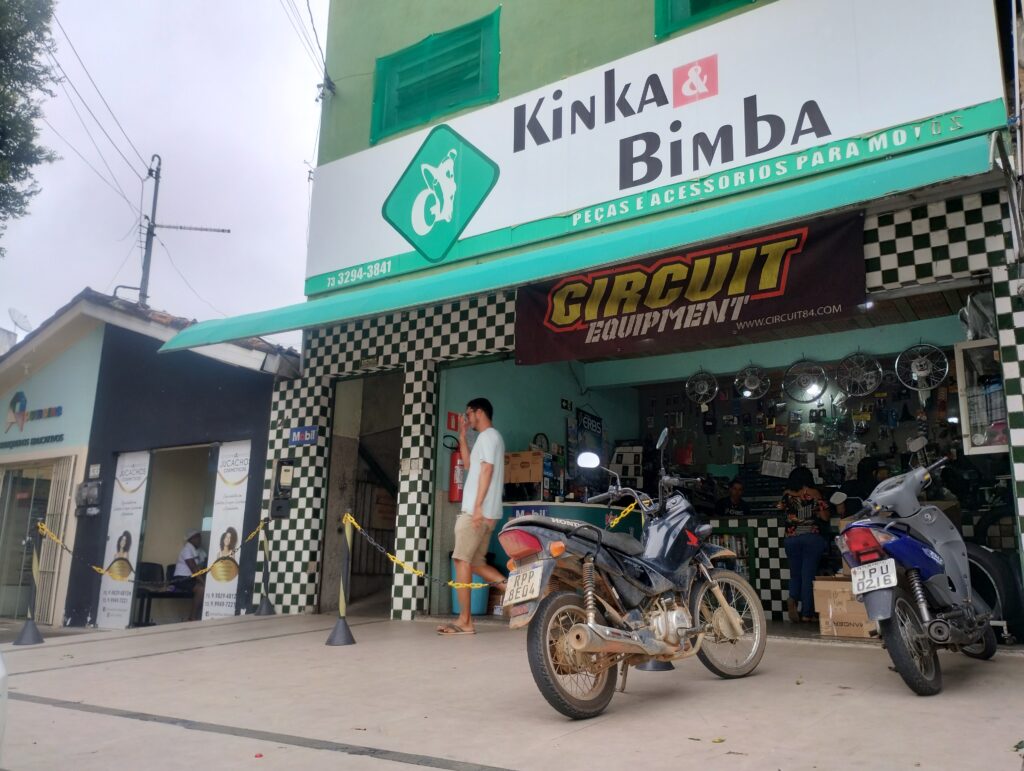 Com 22 anos de trajetória, a Kinka & Bimba se consolidou como uma das principais referências no comércio de peças e acessórios para motos em Itamaraju. Localizada no coração da cidade, na Rua Alvarenga Peixoto, N° 141, a loja é de fácil acesso e conta com pontos de referência importantes, como a Caixa Econômica Federal e a Sipolatti.