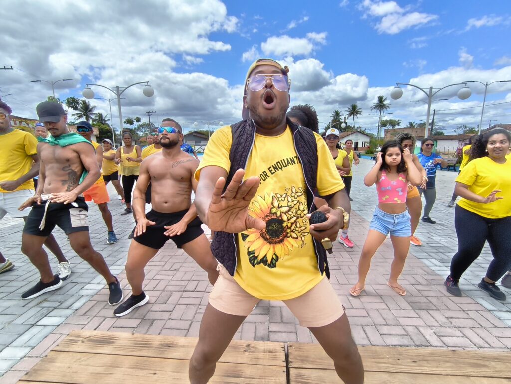 Professor Serginho Mimoso foi o grande animador geral, conduzindo aulas de ritmos e interagindo com todos, garantindo descontração e alegria durante as atividades.