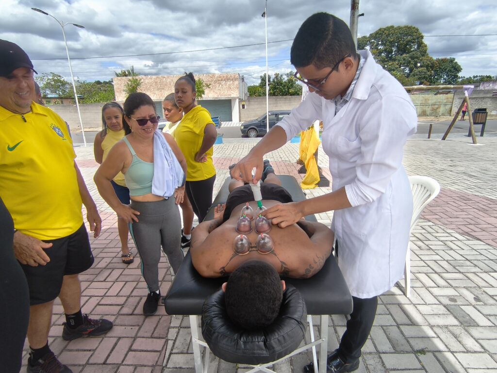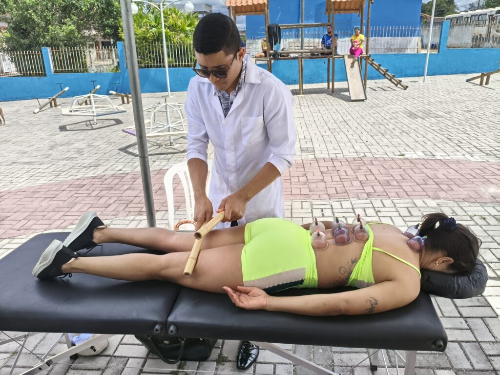 Além das aulas, os participantes puderam contar com a aplicação de ventosaterapia, realizada por Marcos Antônio, que foi um dos destaques do encontro. A técnica chamou atenção e fez sucesso entre o público, que aprovou a iniciativa como mais uma forma de cuidado com a saúde.